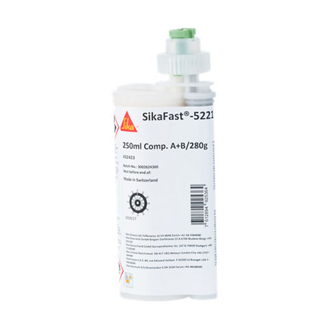 Uncured SikaFast®-5211 NT is a pasty, non-sagging, hardly inflammable material which allows an easy and precise application. Thanks to its fast cure it allows for fast handling of bonded components. The broad adhesion range enables to bond diverse materials and to replace mechanical fixing.